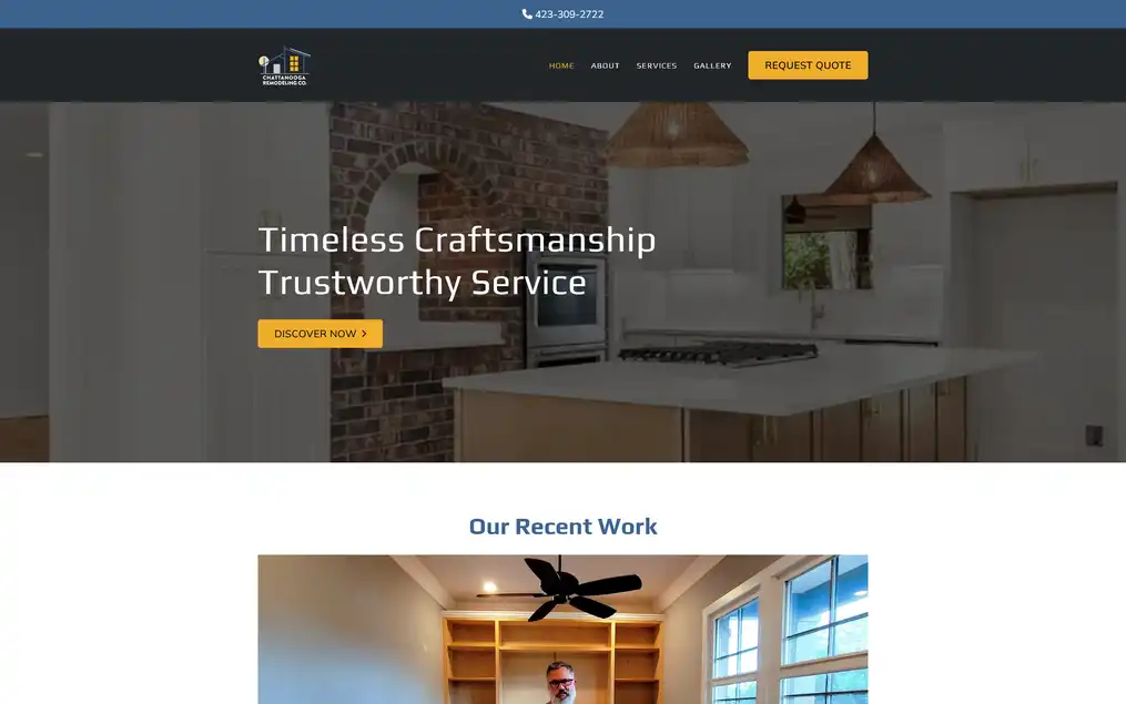 A comprehensive website to serve as the digital hub for a premier Chattanooga-based remodeler. The site is structured to highlight their wide array of services—from kitchens to outdoor spaces—and is optimized to attract local search traffic, effectively turning online searches into new business opportunities.