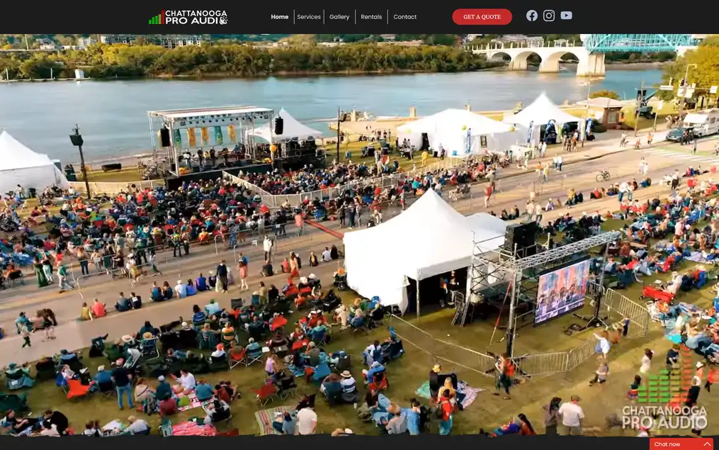 A dynamic website for this full-service production company to serve as their primary tool for marketing and client acquisition. The site effectively showcases their extensive capabilities in audio, video, and lighting, and features a detailed quote-building system that allows potential clients to easily request information for events of any scale.