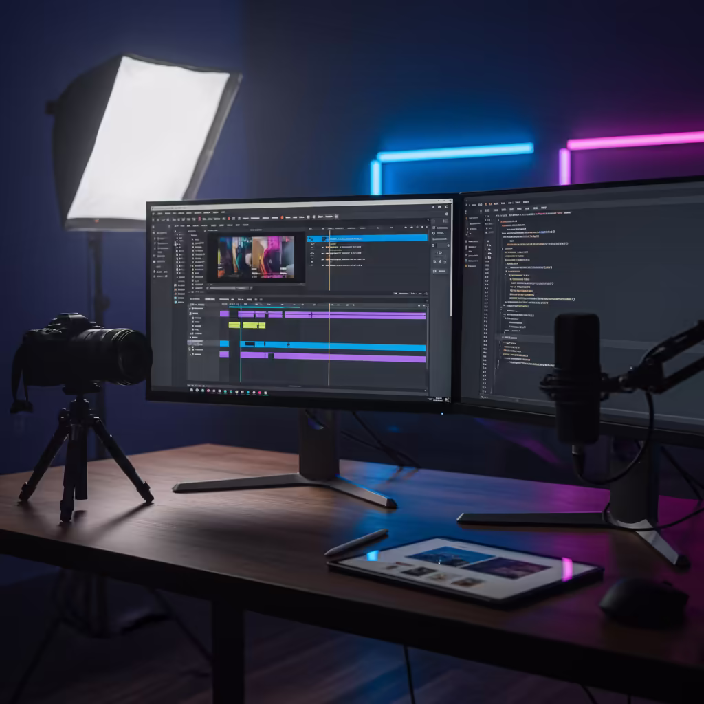 Producing high-quality video by editing in Premiere Pro, complemented by creating engaging motion graphics and visual effects in After Effects.