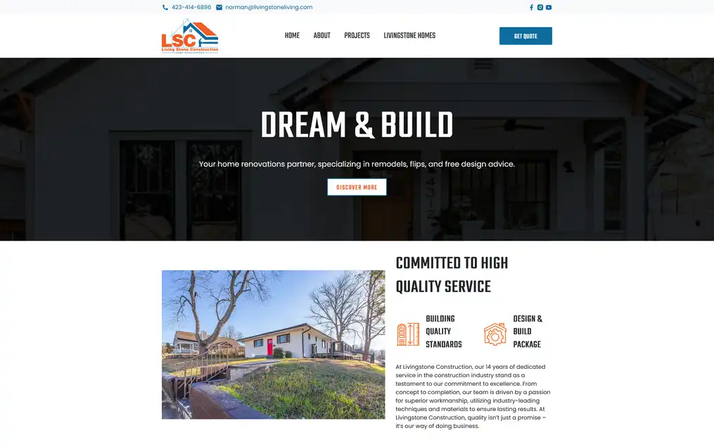 A robust lead-generation website for this residential and commercial construction firm. The site serves as a digital portfolio, meticulously showcasing their quality craftsmanship and diverse projects, while streamlining the process for potential clients to request a consultation and build trust.