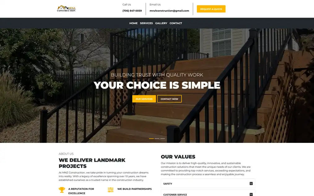 Official website for MNZ Construction, creating a powerful online tool to showcase their full range of construction services and efficiently connect them with new residential and commercial clients.