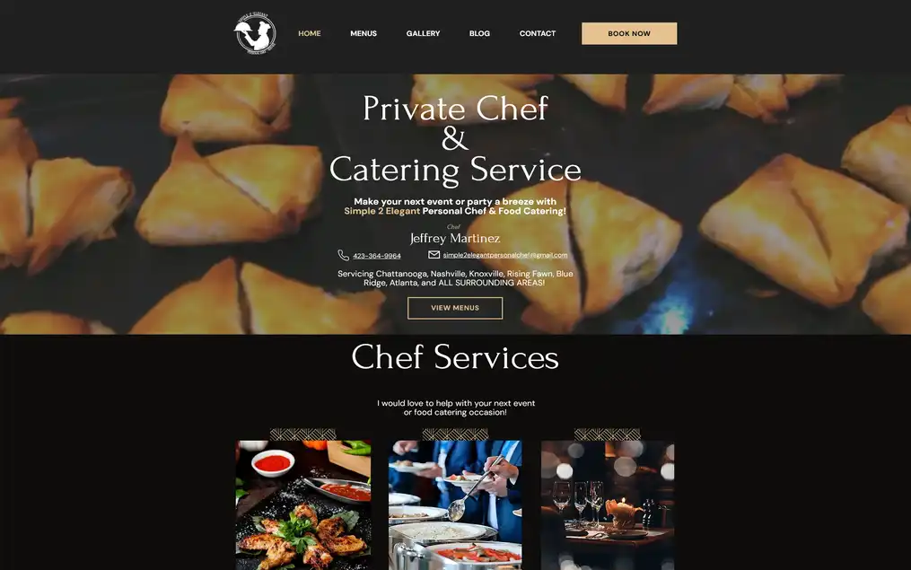 A refined personal brand website for a private chef, showcasing their culinary expertise and diverse service offerings. The platform was crafted to attract clients for private dining, cooking classes, and catering, effectively converting visitor interest into direct bookings through a clear and inviting user experience.