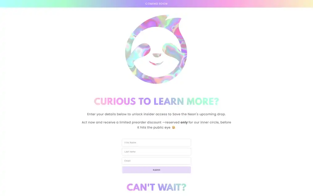 Landing Page for “Save The Neon”. A newly launching clothing company focusing on cutting edge fashion with a unique twist on bold new designs and colors.