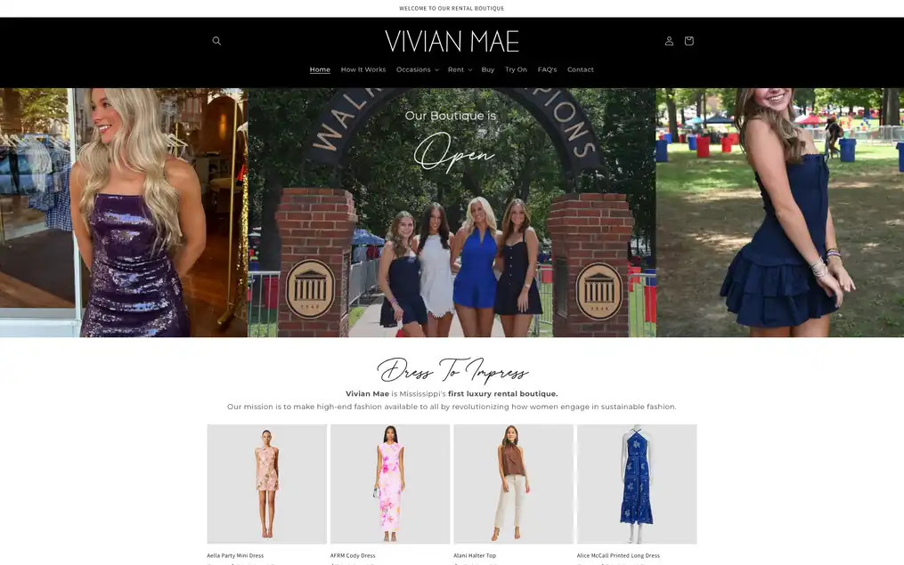 E-commerce website counterpart to Vivian Mae Styles. An online store offering clothing rentals and purchasing. Feature a custom rental system allowing anyone to allow their personal clothes to be rented.